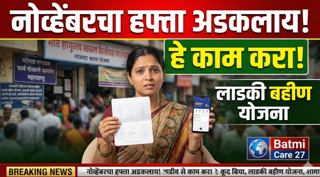 राज्यातील लाडकी बहीण योजनेच्या लाभार्थ्यांसाठी महत्त्वाची बातमी आहे.नोव्हेंबर महिन्याचा हप्ता अद्याप अनेकांच्या खात्यात जमा झालेला नाही.सरकारकडून याबाबत लवकरच अधिकृत अपडेट येण्याची शक्यता आहे.Batmi Care 27 वर आपणास अशाच ताज्या आणि खात्रीशीर मराठी बातम्या मिळतात.